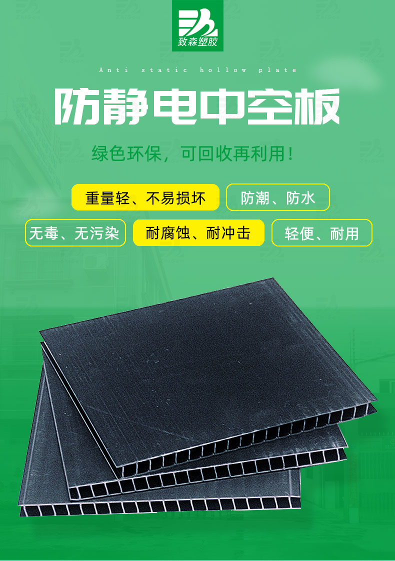 類型 | 防靜電中空板是中空板的一種,比普通導電中空板增加了防靜電的功能,表面電阻率不一樣, 防靜電中空板是10的6-9次方! | ||||||||||